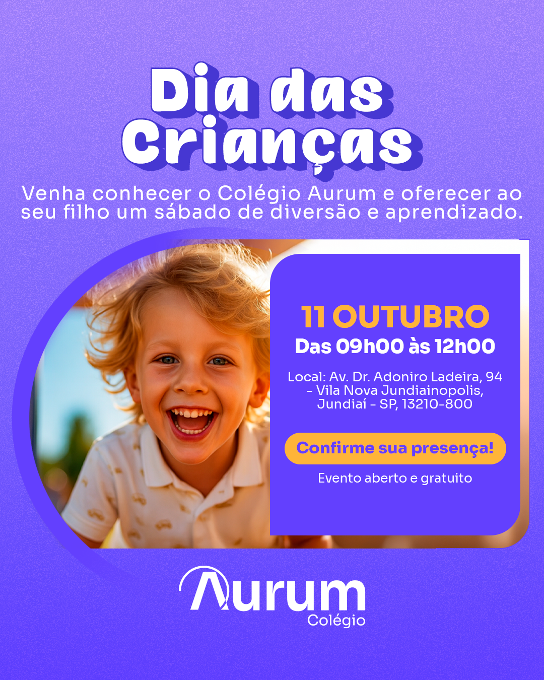 Venha participar do Aurum Experience Dia das Crianças Dia 11 de outubro, 09h às 12h Nome Este campo é obrigatório. Sobrenome Este campo é obrigatório. Email Este campo é obrigatório.